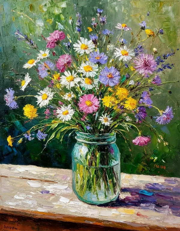 Пишем полевые цветы в банке