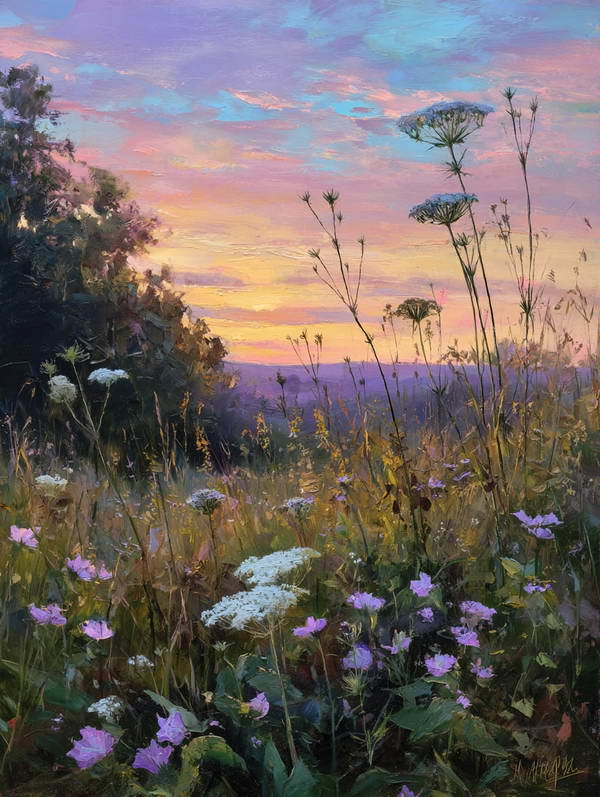 Пишем пейзаж с полевыми цветами